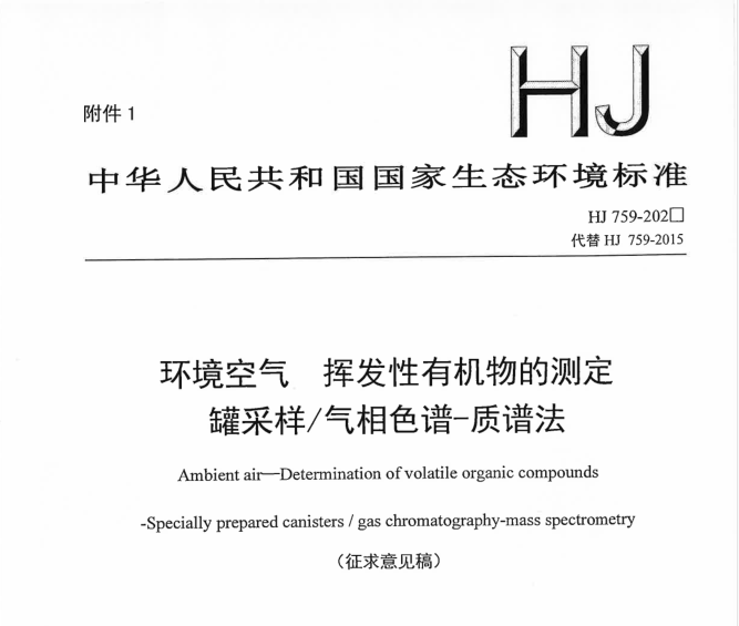 《環(huán)境空氣 揮發(fā)性有機(jī)物的測定 罐采樣/氣相色譜-質(zhì)譜法》迎